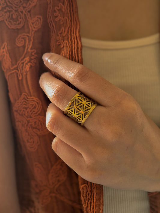 Flower of life adjustable brass ring