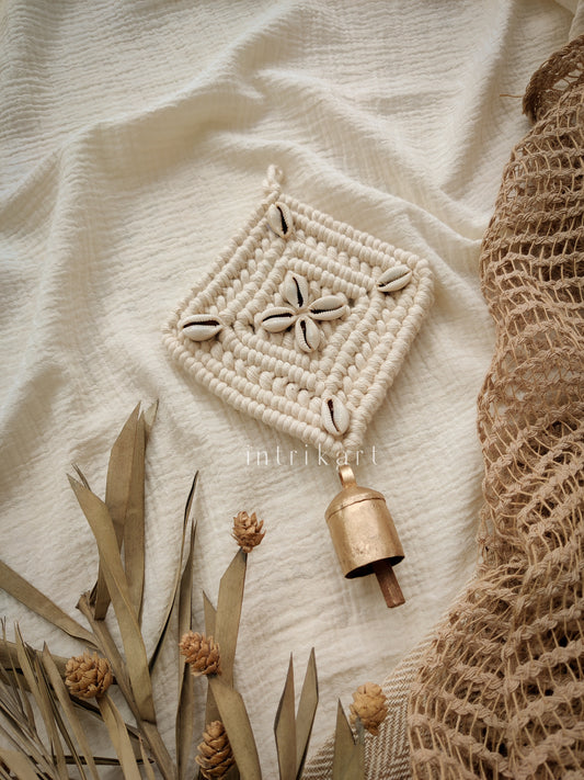 Cowbell cowrie shell small macrame wall hanging