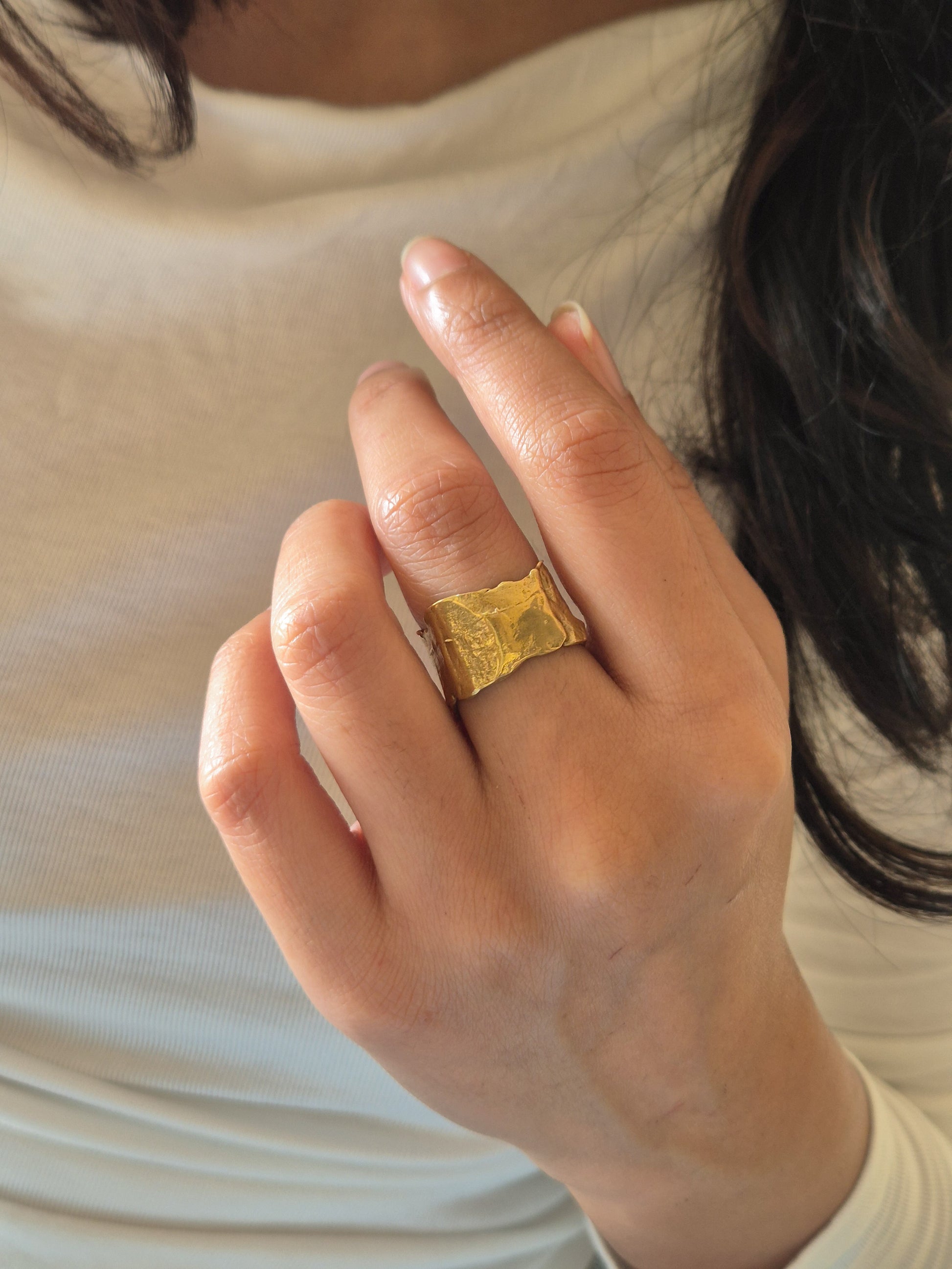 Bold in its simplicity, the Aurum Band speaks volumes with quiet confidence and timeless form. An abstract band that proves less is more—a statement piece rooted in pure, effortless elegance.