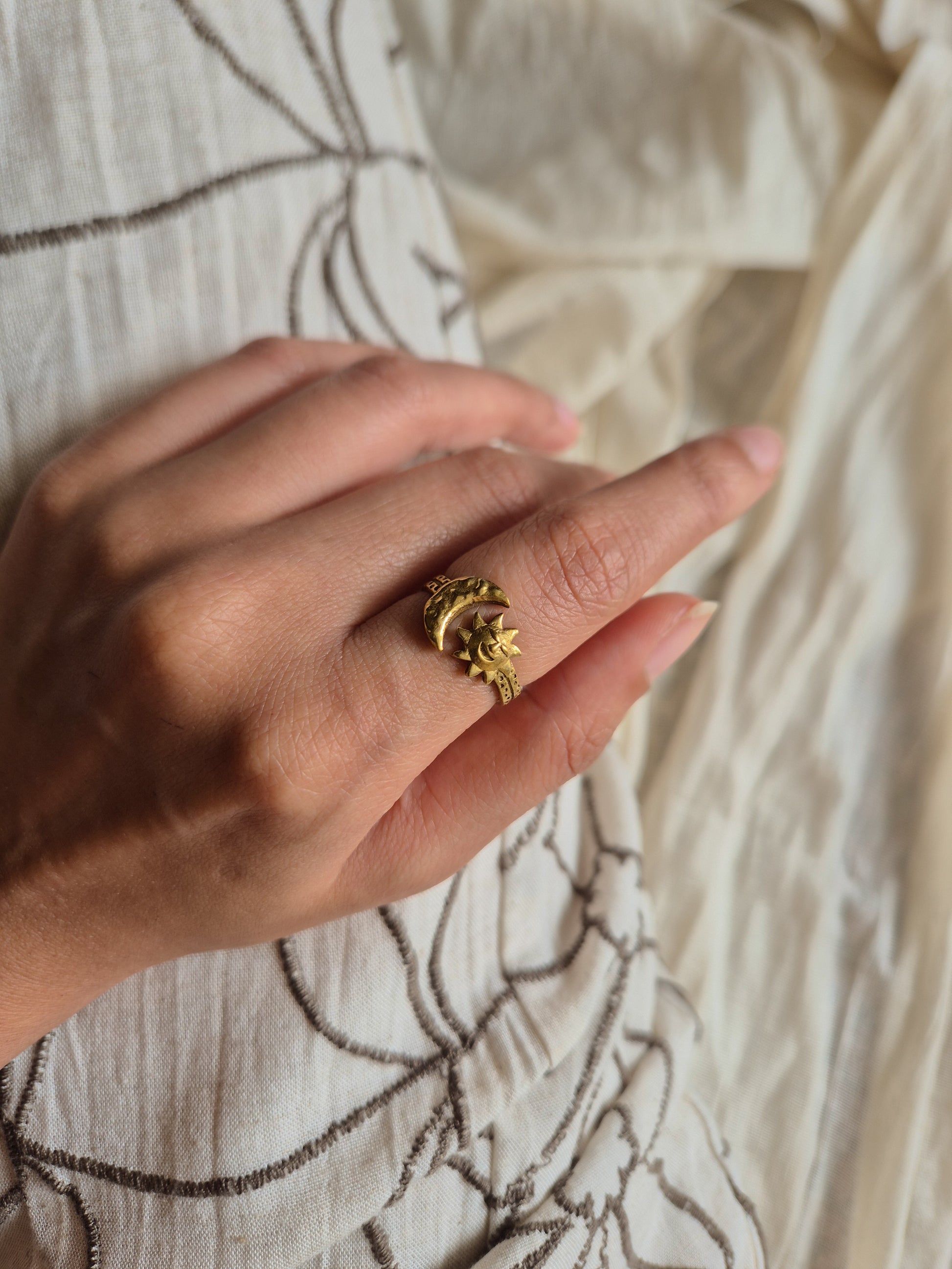 A dance of opposites—sun for strength, moon for soul. This ring holds the rhythm of nature wrapped around your finger, reminding you to honor both your light and your stillness, just like nature does.